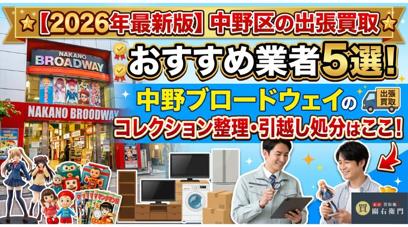 この記事では、中野区エリアに対応し、サブカル・ホビー・家具家電・骨董品まで幅広く高価買取してくれる業者5社をランキング形式でご紹介します。エリア特性に合わせた選び方や、査定額アップのコツも解説しますので、ぜひ参考にしてください。