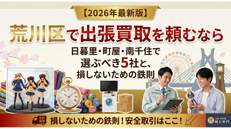 とはいえ、業者選びを間違えると「安く買い叩かれた」「押し買いでトラブルになった」という話も珍しくありません。この記事では、荒川区在住の方が安心して依頼できる出張買取業者5社と、損しないための鉄則をセットでご紹介します。