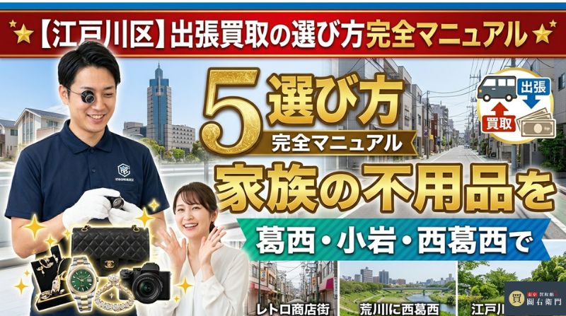 この記事では、葛西・西葛西・小岩・船堀・瑞江など、江戸川区にお住まいのご家族向けに、実際に頼れる出張買取業者5社と、ファミリーが損しないための賢い使い方をまとめました。